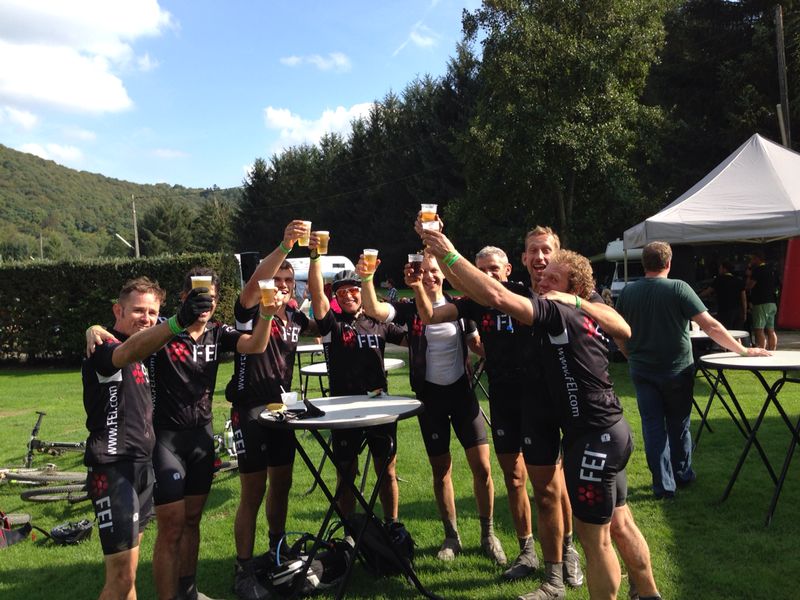 Na de “opwarming” van dag 1 beginnen we aan het echte werk, op het menu staan 94km en 2050hm. We staan er als team vandaag mooi op met onze FEI kleding. De route van vandaag voert ons vanaf Bure naar la Roche en Ardenne. Om 06:15 ging helaas al de wekker, was wel erg vroeg! Maar de zin om te gaan fietsen kwam al snel weer boven drijven.
