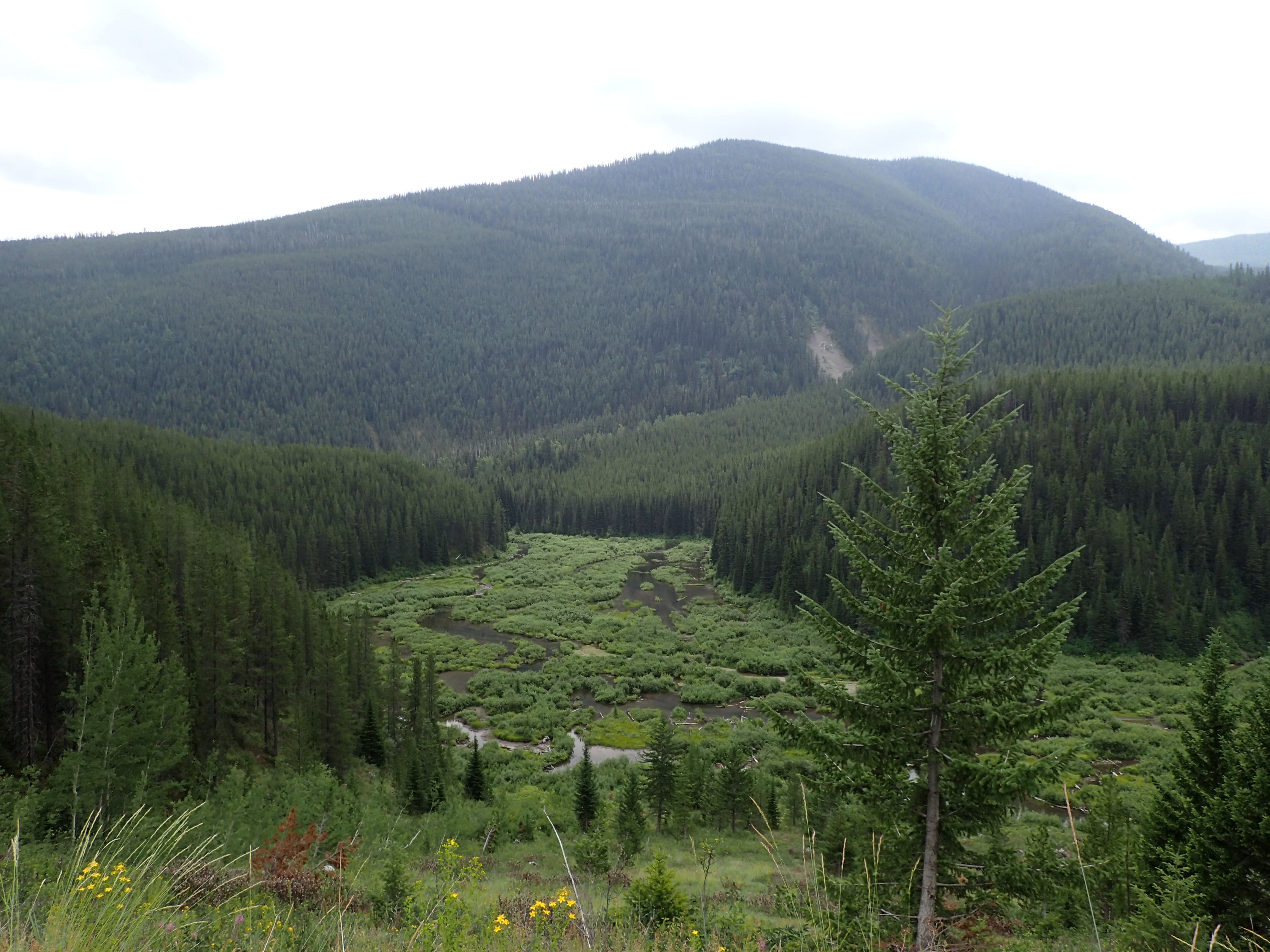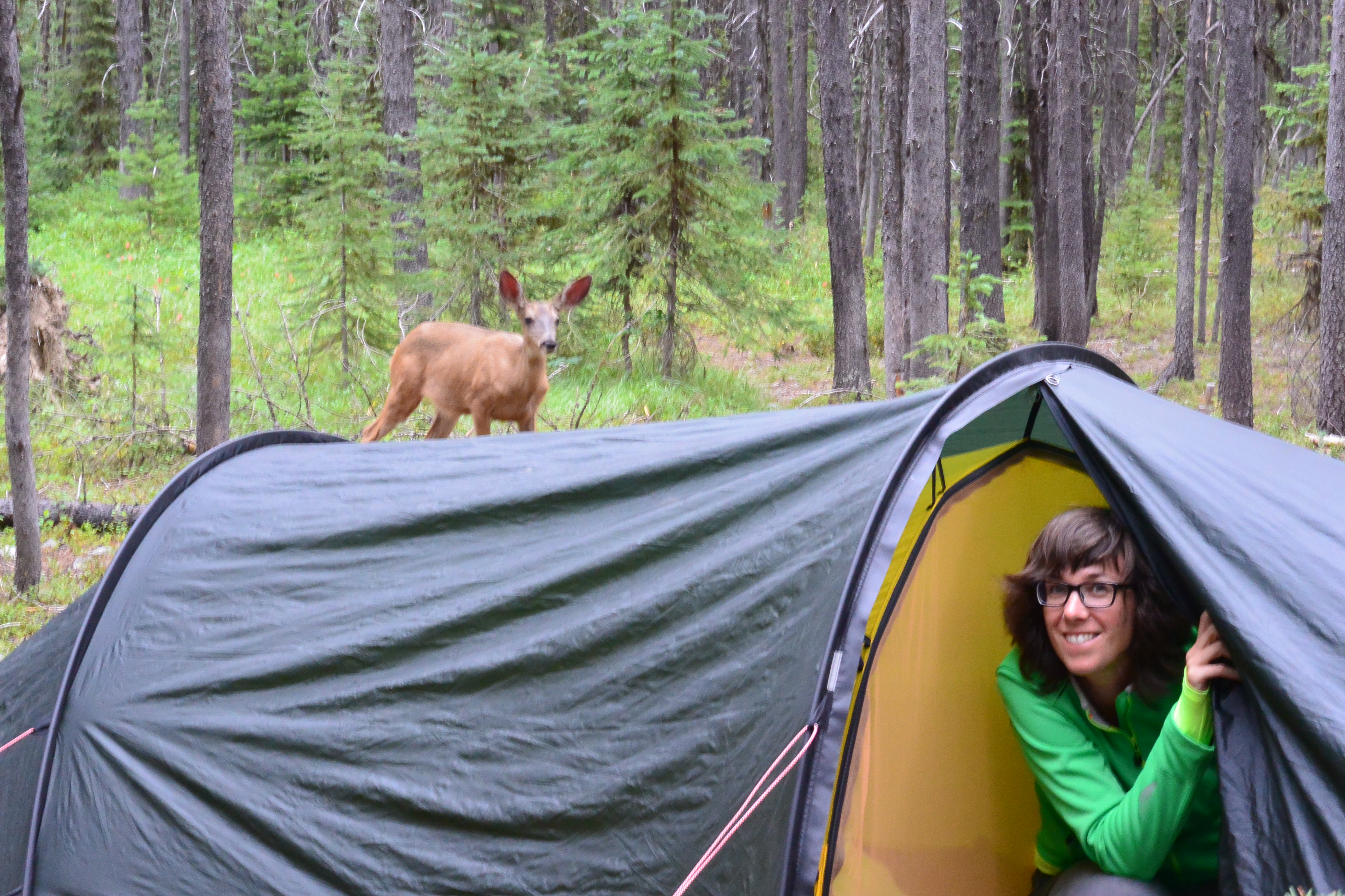 Gisteren ook een fikse klim gehad naar Whitefish Divide. De vlinders waren weer present om mij te helpen omhoog te komen. Eenmaal boven prachtig uitzicht. Je bent helemaal omgeven door bomen. Oneindig ver bomen zo lijkt het. Een aantal hellingen zijn kaal en op sommige plaatsen kon je de vallei in kijken die vol staat met kleine meertjes. Het schijnt het ideale gebied te zijn om beren te spotten. Niets gezien. Wel veel hertjes!