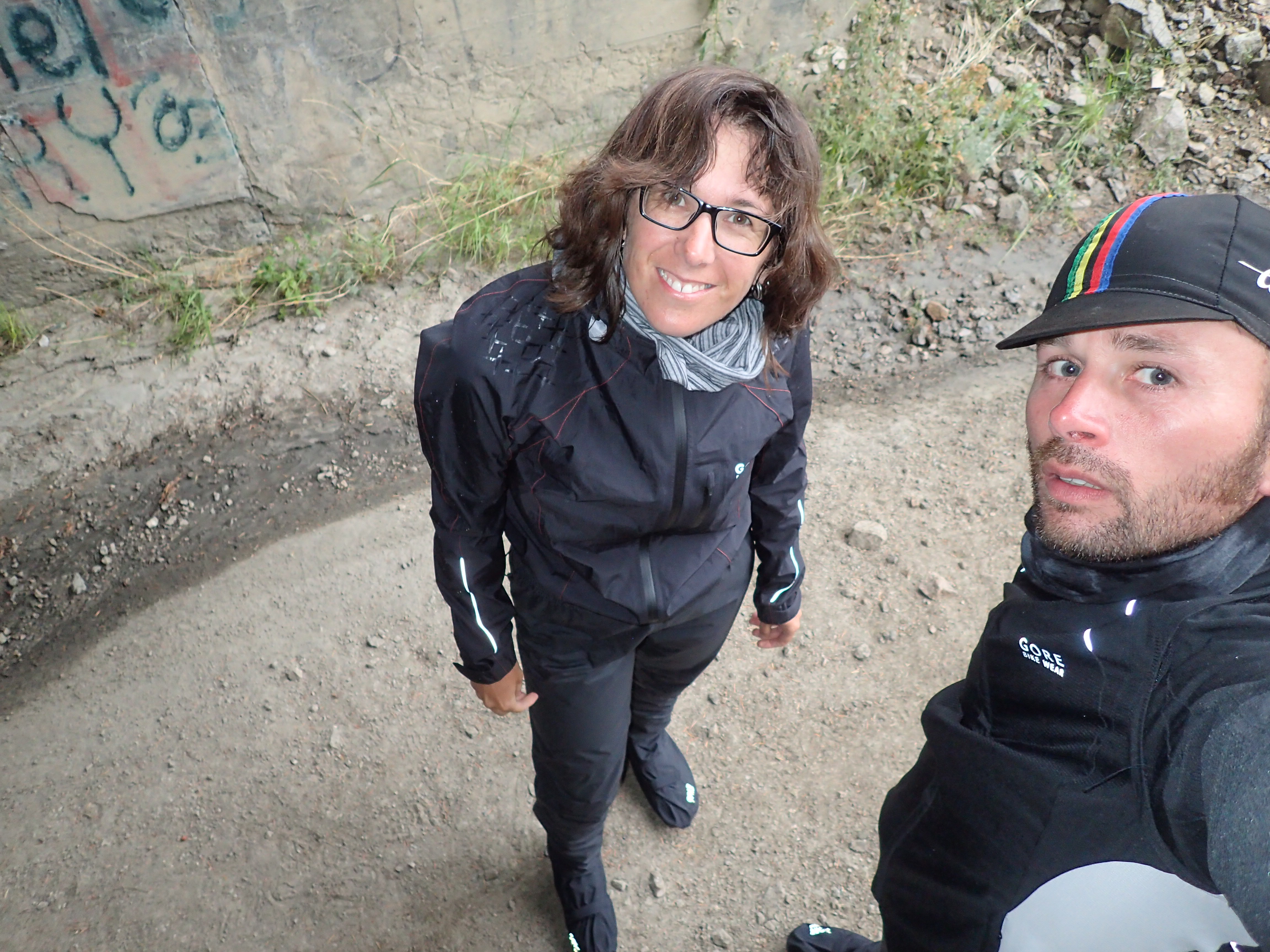 Een mooi pad gereden wat vroeger een spoorweg was. Fikse klimmen ertussen. Toen we vertrokken miezerde het een beetje. De regenjas maar aangedaan en de rest bovenop gedaan zodat we het snel aan konden trekken. De regenjas kon al snel uit en we hebben het een groot deel van de dag droog kunnen houden. Uiteindelijk toch een enorme onweersbui! Net op dat moment kwamen wij bij een tunnel. Even staan schuilen maar het duurde echt te lang dus alle regenkleding aangedaan en weer op pad gegaan.