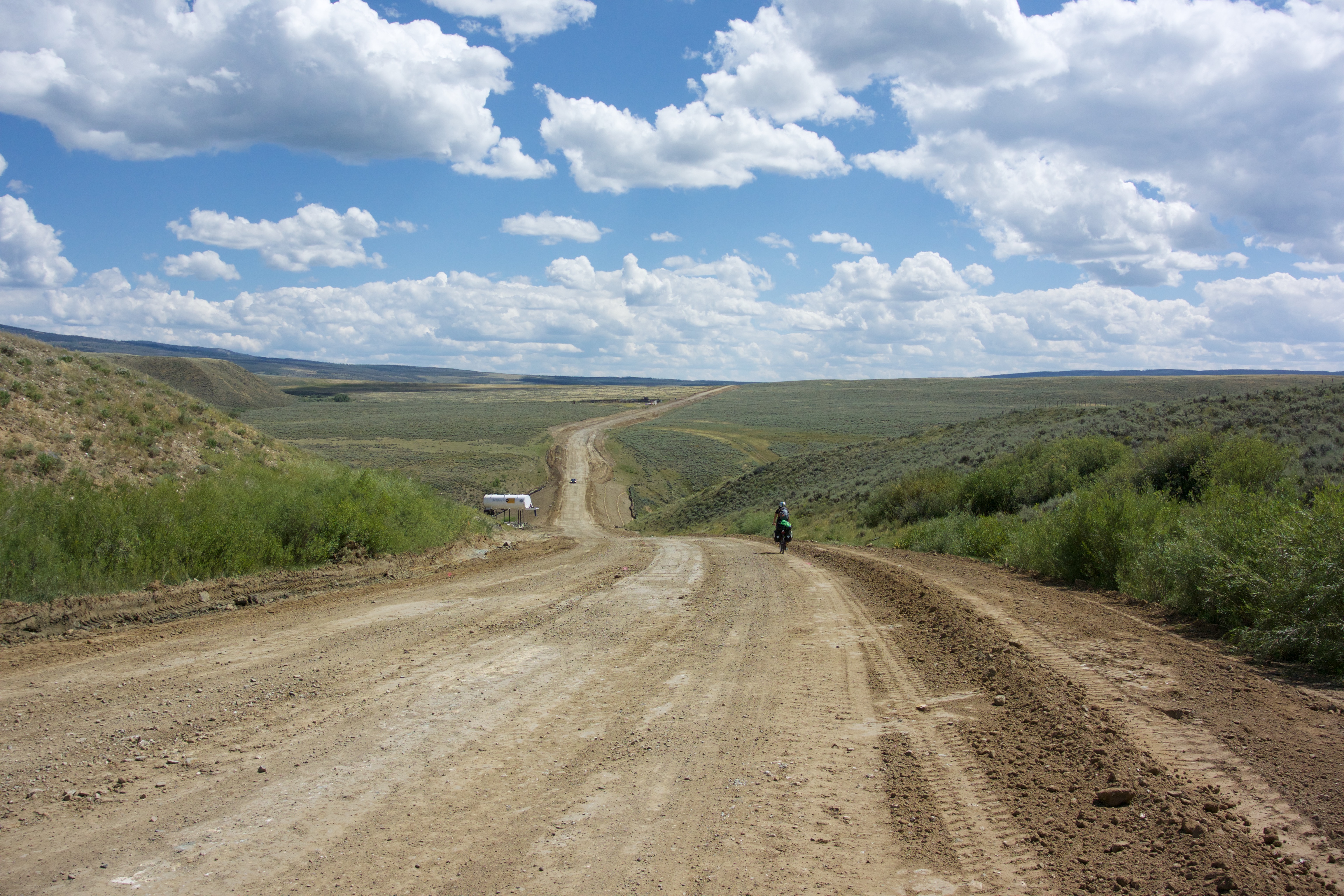 Het begon “goed” het vertrek uit Rawlins. We reden door een achterwijk en ineens schoten er 2 chiwawa’s achter ons aan. Ze probeerde in onze kuiten te bijten. Niet echt een fijn iets kan ik je vertellen. Ik raak dan meteen gestrest. Ik houd echt wel van honden maar niet wanneer ik op de fiets zit. Ik denk dat ze de draaiende wielen indrukwekkend vinden ofzo. Rob probeerde met zijn voet er een op de neus te tikken maar hij kwam al snel mijn kant op.