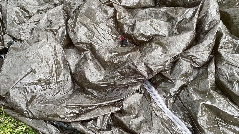 Natte spullen. Of het nu van de regen is of van de dauw. s’Morgens een natte tent inpakken en klamme kleren aan. Alles is vochtig en klam.