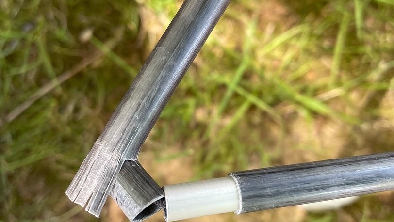 Materiaalpech. Deze vakantie mogen we niet klagen. Drie lekke banden en twee keer een stok van de tent gebroken (dezelfde). Gelukkig hadden buren tape en konden we de tent nog repareren.