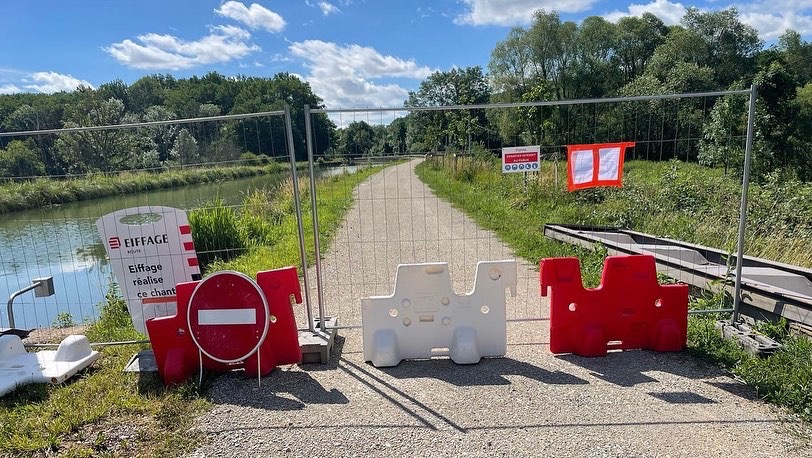 Wegversperring. Soms door de natuur en soms een flinke omleiding.